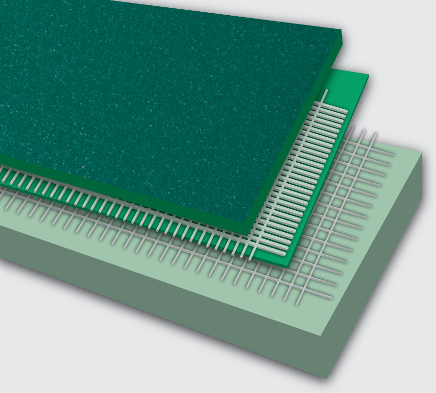 2. Schaumstoffschicht mit Polymerisationsgrad; 3mm dick für gute Rückprall- und Stoßdämpfung